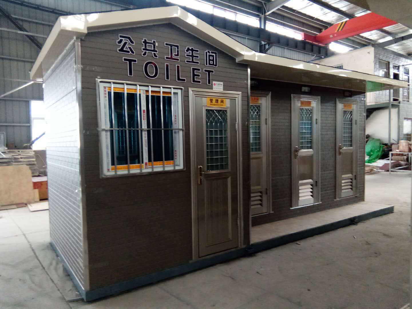 移動(dòng)廁所簡介及制作方法:1、房體結(jié)構(gòu): 采用輕鋼龍骨結(jié)構(gòu),鋼材全部使用標(biāo)準(zhǔn)鍍鋅鋼材。根據(jù)房體的大小特選用國標(biāo)方管(50-100)焊接而成。鍍鋅管厚度為2.8mm,方管經(jīng)過除銹后進(jìn)行鍍鋅、防腐處理,這樣就會(huì)延長廁所使用壽命.2、墻體: 墻板采用金屬雕花板,金屬雕花板是保溫、隔熱、環(huán)保、阻燃、防雨、防凍、隔音、抗震等...