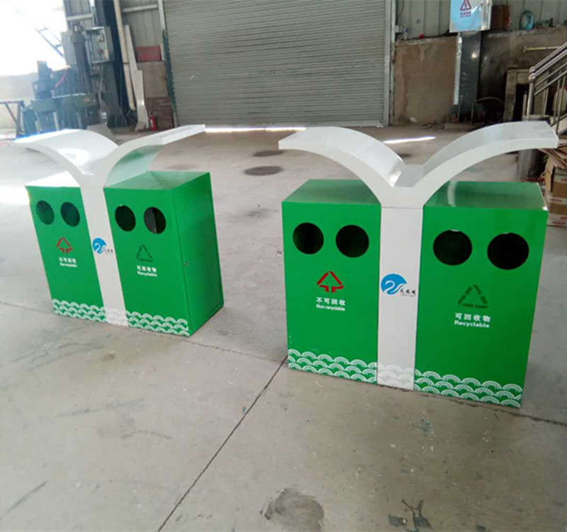 蝴蝶型分類(lèi)環(huán)保垃圾桶果皮箱采用SMC復(fù)合材料,3500噸壓機(jī)模壓成型,內(nèi)外光潔度一致。