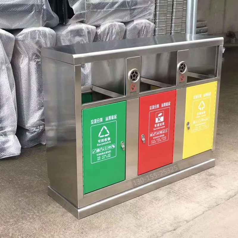 不銹鋼分類垃圾桶采用優質加厚不銹鋼制造,具有一定的防腐蝕功能,不易生銹,使用壽命更長,做工精致,外觀大方,適合各種戶外場所。
